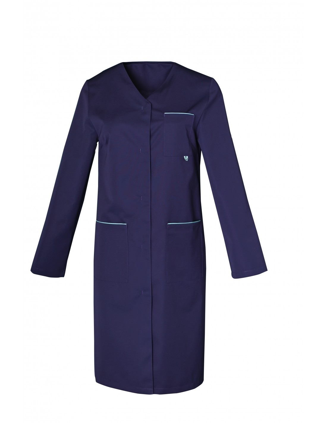 Blouse manches longues avec patte et pressions pour les régler, 65 % polyester recyclé, 35 % coton, 210 g/m2. Encolure en V, fermeture à l'avant par 5 pressions en décalé.1 poche à la poitrine, 2 poches basses.