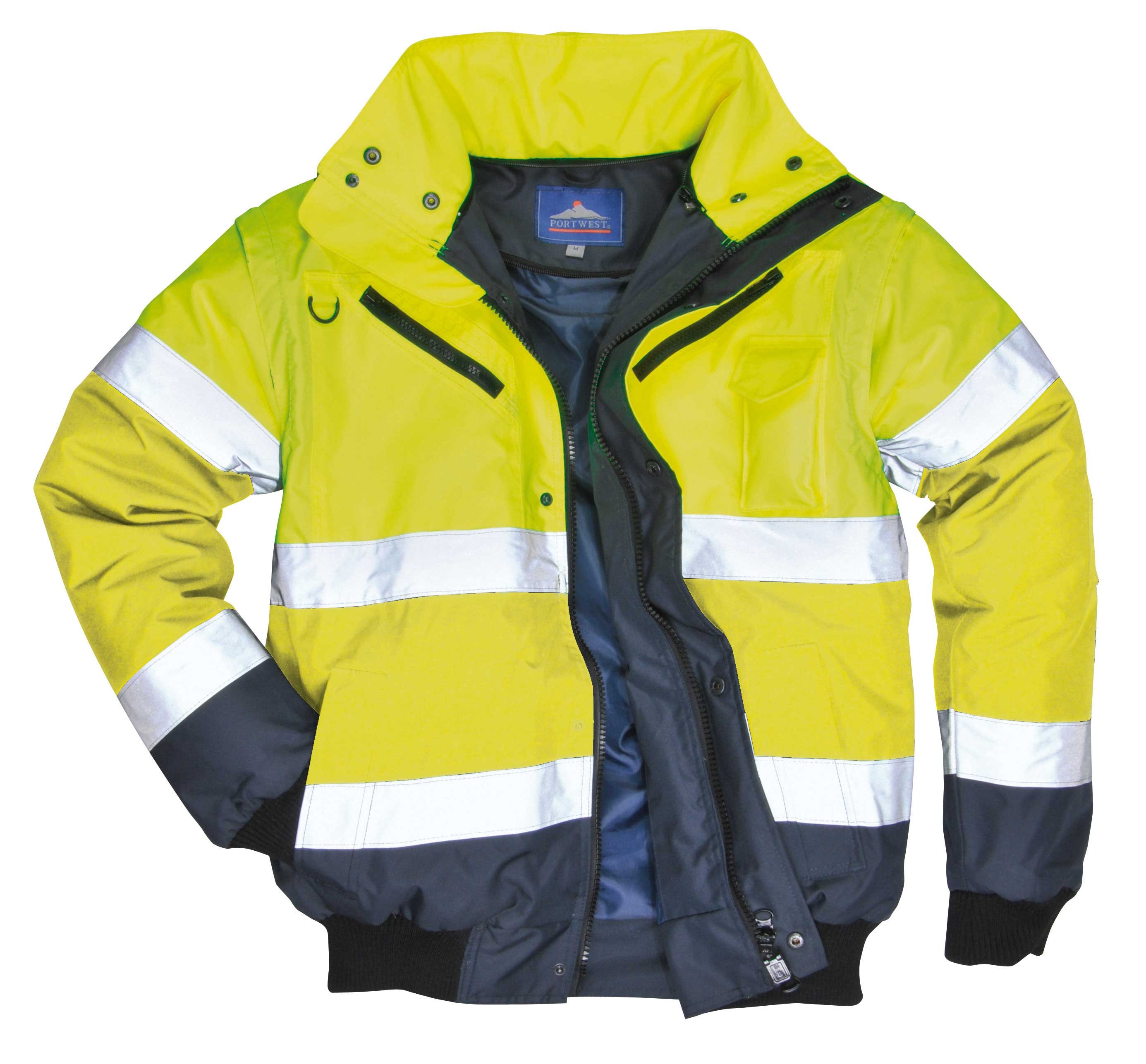 BLOUSON DE PLUIE HAUTE VISIBILITÉ BOMBER JAUNE FLUO/MARINE