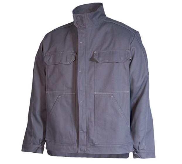 Blouson 60 % coton/ 40 % polyester. Col montant fermé par 2 pressions plastiques cachées. 2 poches poitrine plaquées avec rabats fermés par 2 pressions plastiques cachées, 1 poche portableinsérée dans rabat de poche, 2 poches basses plaquées avec ouv
