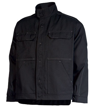 Blouson 60 % coton/ 40 % polyester. Col montant fermé par 2 pressions plastiques cachées. 2 poches poitrine plaquées avec rabats fermés par 2 pressions plastiques cachées, 1 poche portableinsérée dans rabat de poche, 2 poches basses plaquées avec ouv