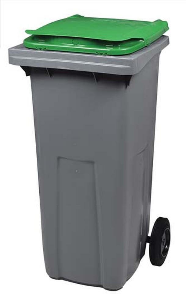 CONTENEUR POUBELLE PLASTIQUE TRI SÉLECTIF 2 ROUES PLASTIQUE GRIS/COUVERCLE VERT 240 L