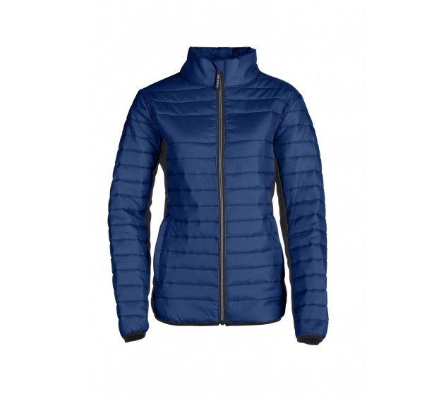 Doudoune 100% polyester légère, bi matière, coupe ajustée. 2 poches latérales zippées, 2intérieures. Modèle Femme