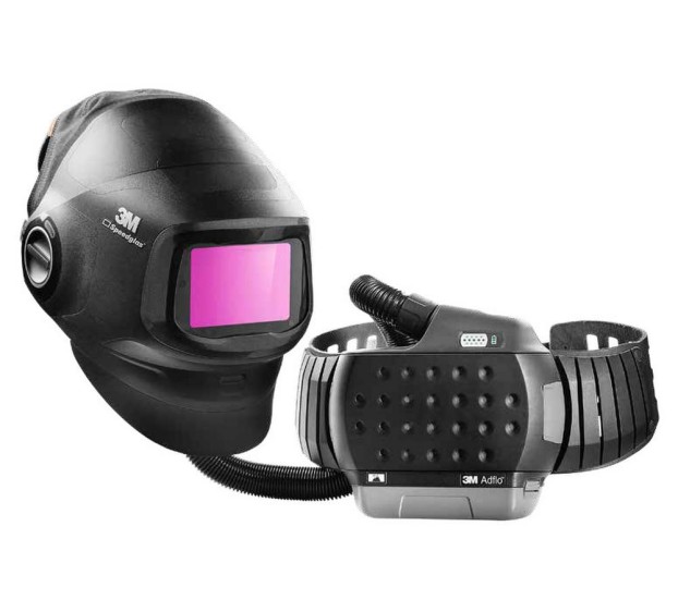 Masque de soudage Speedglas G5-01VC très couvrant, protégeant contre les radiations, les étincelles et les projections. Teintes d'obscurcissement ajustables 5 (découpe) et 8 à 14 (soudage). Large visière de protection transparente 104 x 170 mm incurv