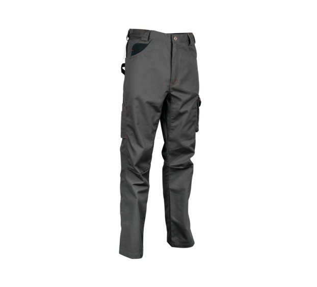 Pantalon 60 % coton / 40 % polyester. Jambes et genoux à coupe ergonomique pour une plusgrande liberté de mouvement. Entrejambe renforcé. Poches larges à l'avant. Poche pour porte-monnaie. 2 poches à l'arrière dont 1 avec patte. Poche latérale. Poche