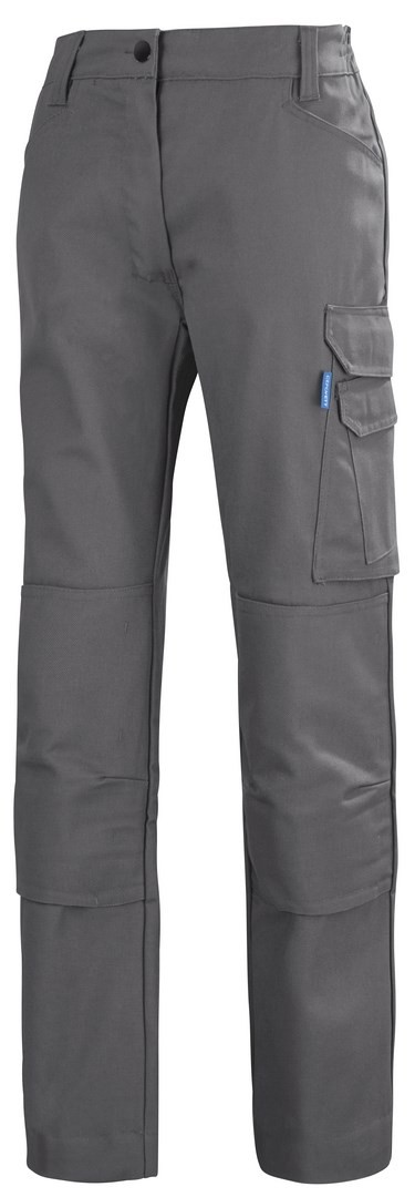 Pantalon femme, 65 % coton / 35 % polyester, 300 g. Braguette glissière, réhaussé au dos. 2 poches cavalières, 1 poche cuisse et 1 poche portable, double poche mètre. Poches genoux. Entrejambe 75 cm + ourlet de 5 cm.