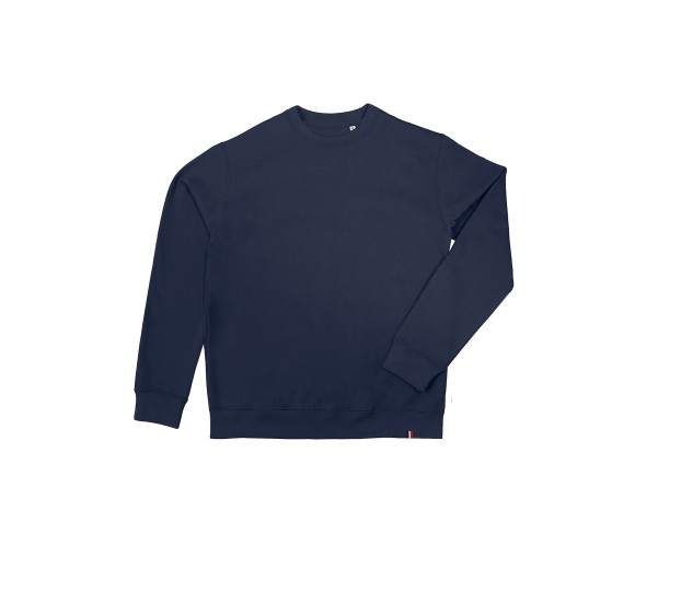Sweat-shirt col rond, 300 g/m². 80 % coton issu de l'agriculture biologique, 20 % polyester recyclé. Manches montées, bande de propreté à l'intérieur du col.