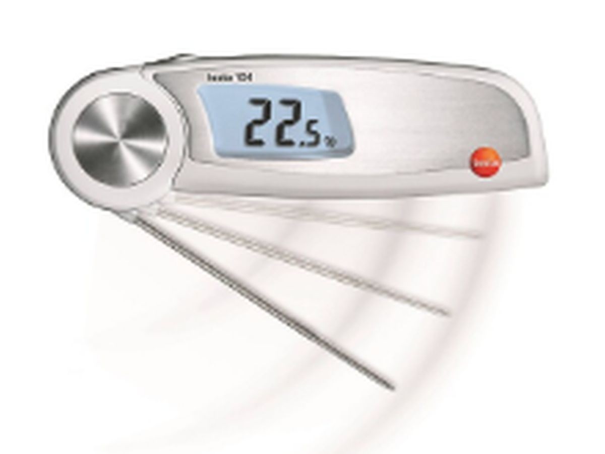 Maintien sûr. Sonde longue et précise de -20 à +60 °C. Pointe fine. Livré avec sonde de température pliable, mode d'emploi, protocole d'étalonnage, bandelettes de couleur autocollantes et piles. 165 g.